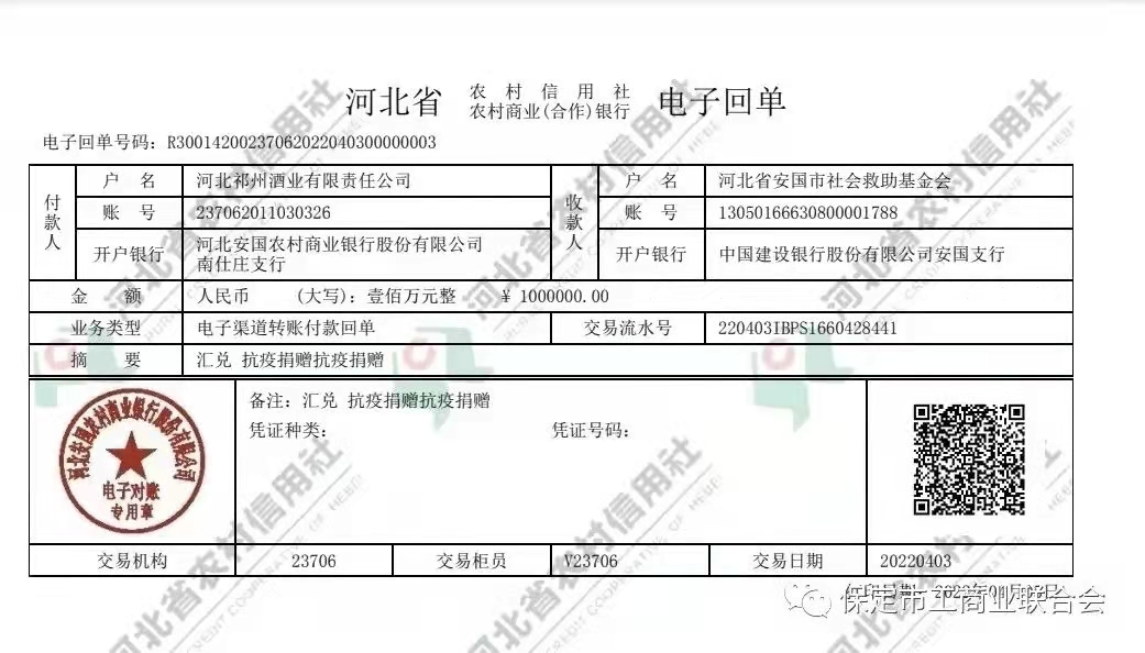 “疫情就是命令,防控就是責任”。當前,安國市的疫情防控工作牽動著社會各界的心。自得知疫情爆發后,省人大代表、河北祁州酒業有限責任公司董事長李義心系家鄉,迅速行動,主動作為,緊急協調開展抗疫捐贈,馳援疫情防控一線。4月3日祁州酒業向安國市社會救助基金會捐贈100萬元現金,用實際行動支援疫情防控工作,為抗擊疫情貢獻企業力量。